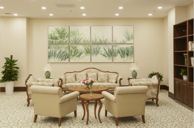 除了专业的医疗护理服务,中心的配套设施也十分完善,能满足长者的日常生活与休闲娱乐需求。绿地率平均达到60%,优美的自然环境的,是长者日常休闲、散步、养生的绝佳之地;贯穿社区东西的多功能大街,配备了老年大学、大型营养餐厅、各类特色餐厅、模拟高尔夫球馆、电影院、健身俱乐部、棋牌室、图书馆等休闲娱乐场所,还有银行、超市、菜市场、温泉游泳馆、美容美发室等生活配套,让长者足不出社区,就能满足所有生活与休闲需求。